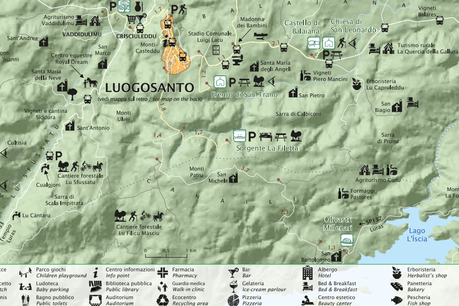 Luogosanto. Mappe e istruzioni per perdersi beatamente nel cuore sacro della Gallura è la cartina turistica realizzata da MonvitoGrafica e Sèmiti di Paràuli per il Comune di Luogosanto.
